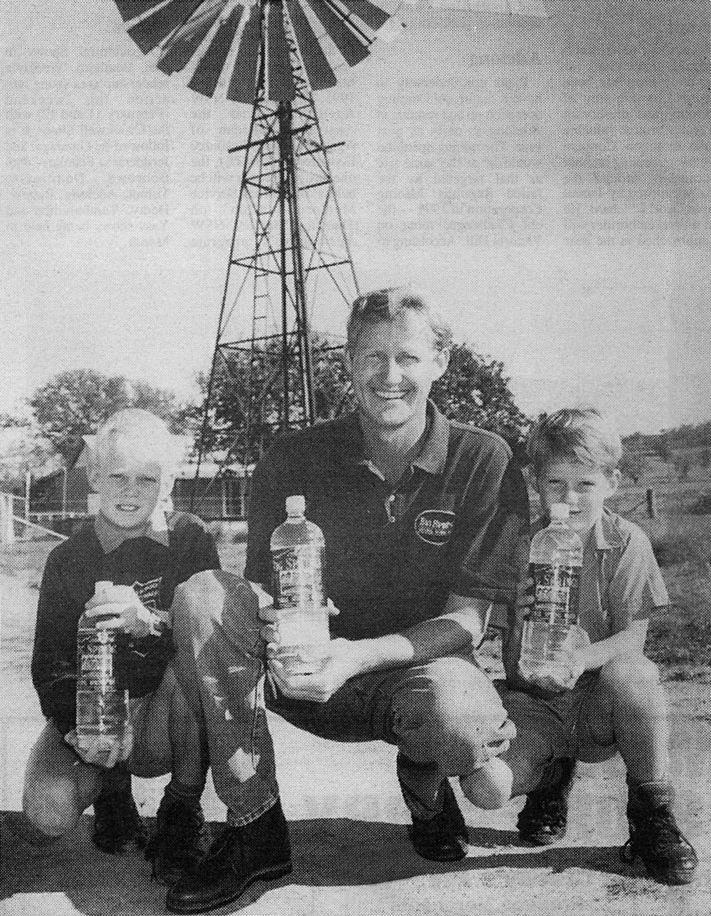 Pictured: Pato with sons George and Angus in 1995 at their property in the Riverina NSW.